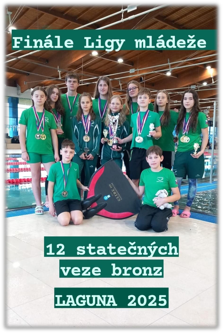 Bronz s chutí vítězství a 12 statečných… Tým mladých ploutvařů Laguny Nový Jičín o víkendu 15.-16.11. dokázal, že srdce a bojovnost jsou více než čísla. I když ve Finále Ligy mládeže České republiky 2025 nastoupili “jen s 55 starty” ze 77 možných, každý z 12-ti nominovaných závodníků ve vodě nechal maximum a bojoval o každý bodík od startu do poslední vteřiny dohmatu. Výsledek ? Úžasné 3.místo v družstvech mládeže ČR. 55 startů laguňáků přineslo 53 vynikajících osobních rekordů. Jsme hrdi na celý tým- jejich nasazení, vůli, týmového ducha a odhodlání, že to jde, i když podmínky nejsou ideální. Naši závodníci předvedli skvělé výkony a domů se vraceli nejen s týmovým bronzem, ale také s obdivuhodnou sbírkou 33 medailí.Z mosteckého bazénu vylovili 15 zlatých, 9 stříbrných a 9 bronzových kovů. Tím však bilance nekončí v celkovém bodování jednotlivců na stupně vítězů vystoupilo hned 7 ploutvařů Laguny, kteří si odvezli zasloužené poháry, k nimž přispěla nejen výkonnost v mosteckém bazénu ale i jejich píle a vytrvalost v průběhu sezóny družstev. Děkujeme sportovcům za representaci města Nový Jičín, školy i klubu.